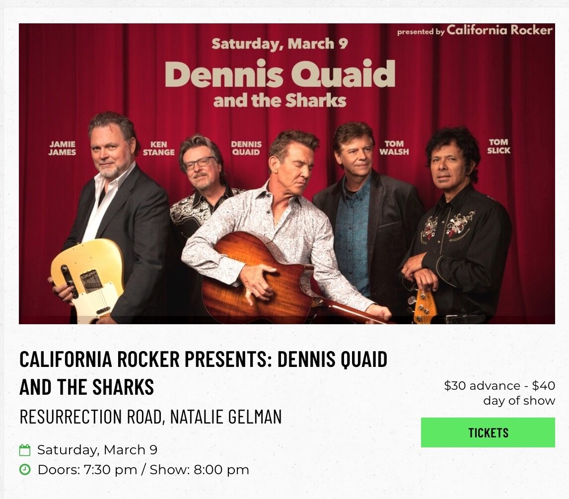 Dennis Quaid and The Sharks at The Mint – Tickets