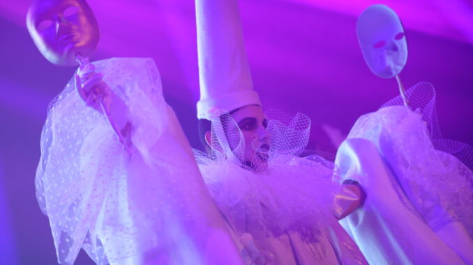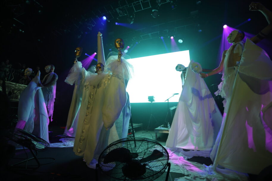Geneva Jacuzzi had a tough act to follow after A Place To Bury Strangers, but had no problems with the high bar. She put on the most theatrical performance of the festival. The set started with Geneva Jacuzzi being carried through the crowd, dressed in white and with a Venetian mask. When they got to the stage, her models were all dressed in white and held up ancient alien masks. It was all a more lighthearted take on Eyes Wide Shut.