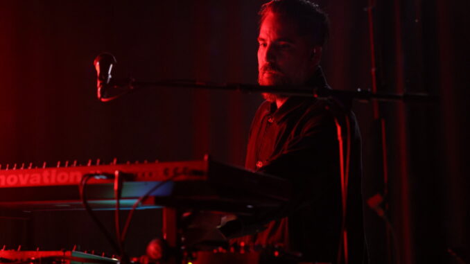 LOS ANGELES – The ambient electronic sounds of The Album Leaf (moniker for Jimmy LaValle) hit all the right pleasure points during his one hour and twenty minute set at Zebulon. It was a rare Los Angeles appearance for the band that included Aaron Ray on drums.